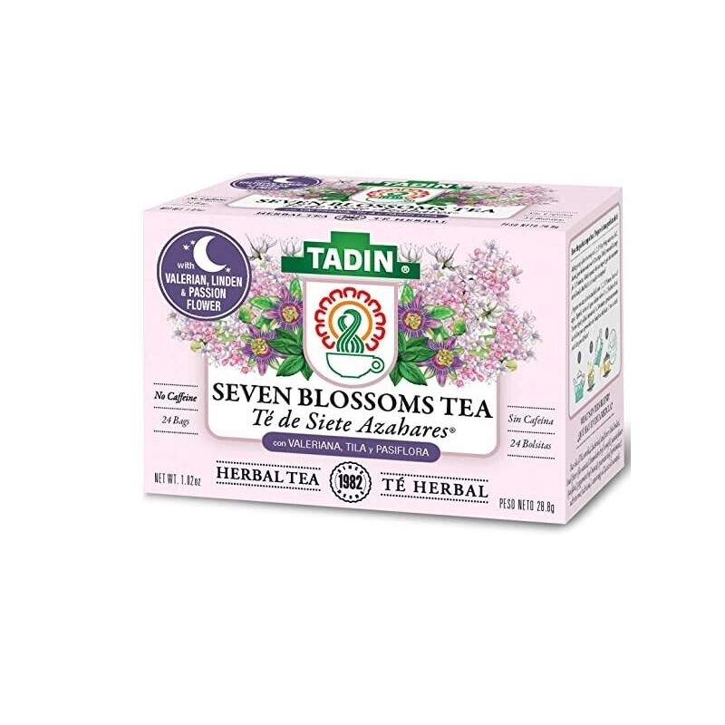 CON NUESTRA MEZCLA MAS ROBUSTA DE INGREDIENTES NATURALES, EL TE DE SIETE AZAHARES DE TADIN EXHIBE LOS REGALOS ABUNDANTES DE LA NATURALEZA CON SU FLOR DE TILA, PASIFLORA Y RAIZ DE VALERIANA JUNTO A OTRAS HIERBAS INTEGRAS QUE SON SUS ACOMPNANTES PERFECTOS. DESPUES DE UN LARGO DIA DE MUCHAS GESTIONES Y QUEHACERES NADA PUEDE ACALLAR TU MENTE Y ESPIRITU COMO EL EFECTO DE SU SABOR CALMANTE, QUE SE SIENTE AL TOMAR ESTA EXCEPCIONAL COMBINACION DE HIERBAS QUE SATISFACE TU PALADAR.
