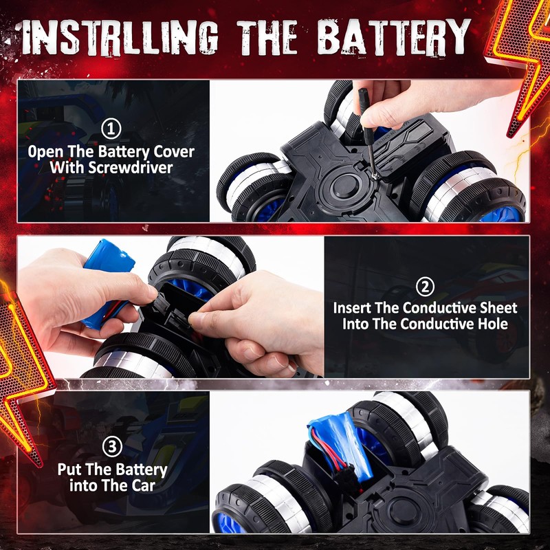 - LET'S PLAY TOGETHER: This car is equipped with two powerful electric motors and four high-quality soft and elastic rubber tires. These tires provide excellent shock absorption and anti-skid properties, ensuring a strong grip. Whether we're indoors or outdoors, let's choose the right location and embark on an exciting journey. The stunt car will provide your kids with a unique and thrilling driving experience.