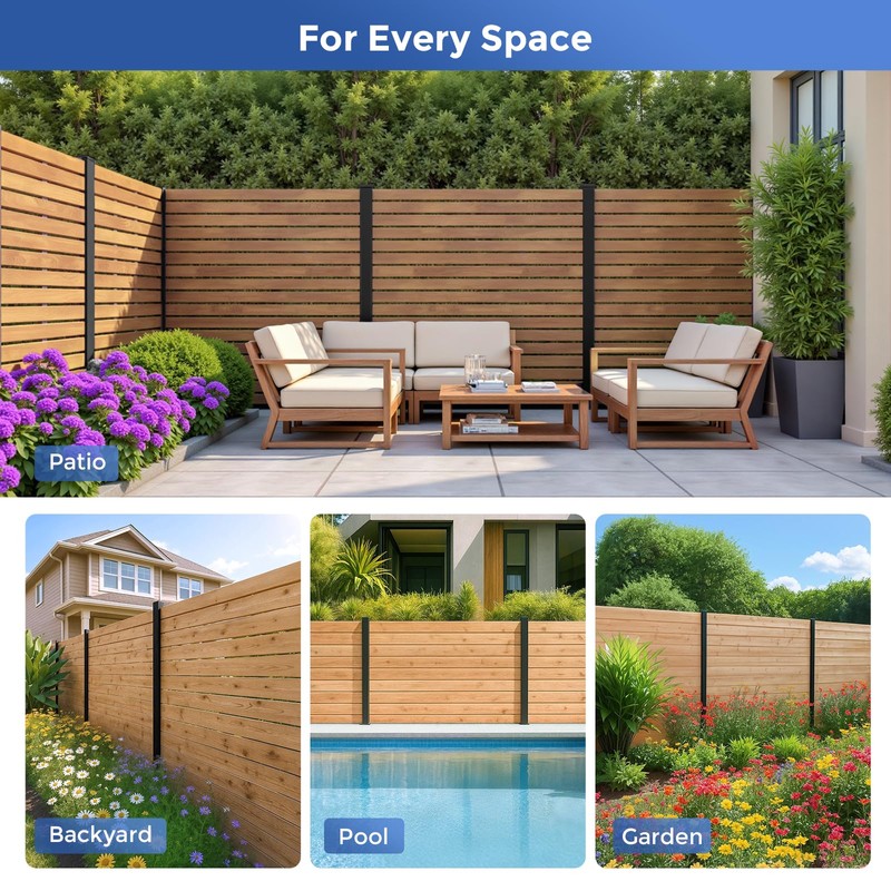 - 【Heavy-Duty Metal Post】 Engineered with premium 6063 aluminum alloy, our fence posts deliver exceptional strength and corrosion resistance for heavy-duty stability. Perfect for privacy fences, ranch fences, and security fences, they withstand extreme weather while supporting thicker wood boards & composite boards up to 0.846 inches thick without bending or warping