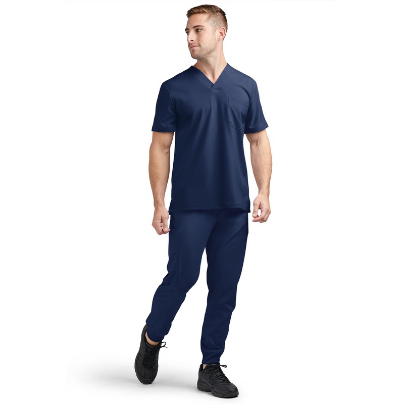Tafford Active Stretch Men’s Jogger Scrub Set – Includes V-Neck Top and Drawstring Jogger Pant (Small, Navy)