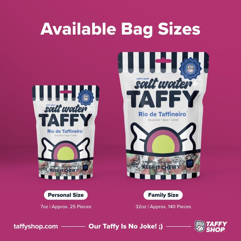 Taffy Shop Rio de Taffinerio, Guarana acai lime Salt Water Taffy Gourmet Soft Chewy Candy, Bulk Sweet Snack, Fresh Gift & Gluten-Free, 35 Individually Wrapped Pieces (7oz)