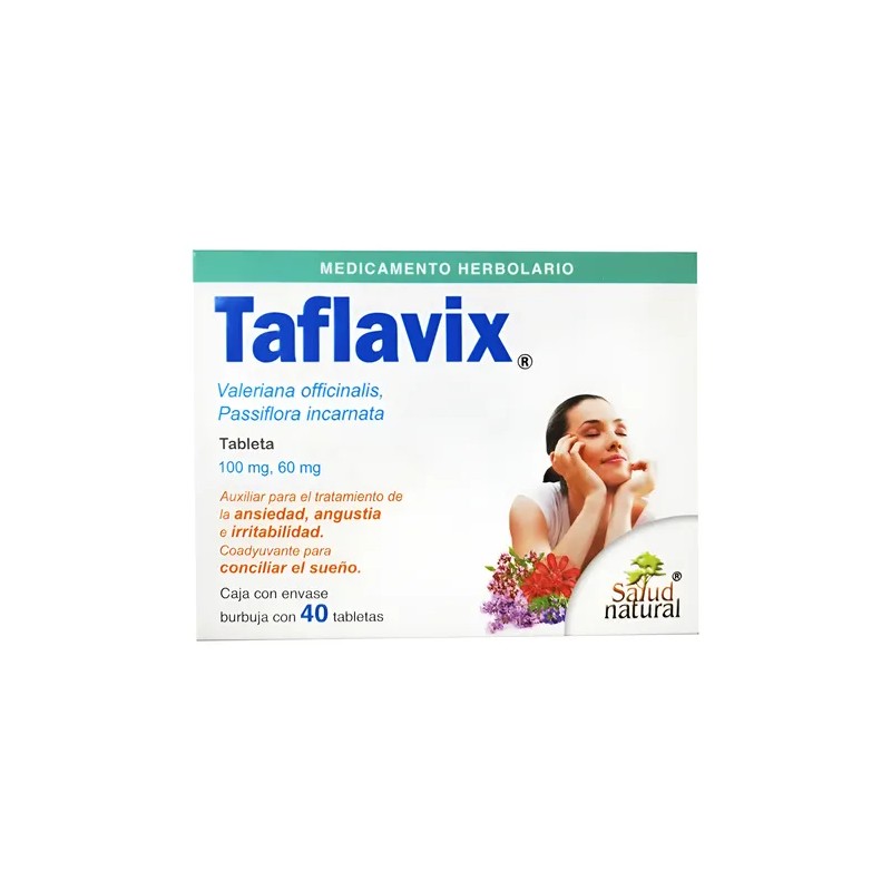 Taflavix contiene extracto natural de Valeriana y/o Pasiflora (según fórmula), reconocidas por su acción tranquilizante y ansiolítica suave 💚