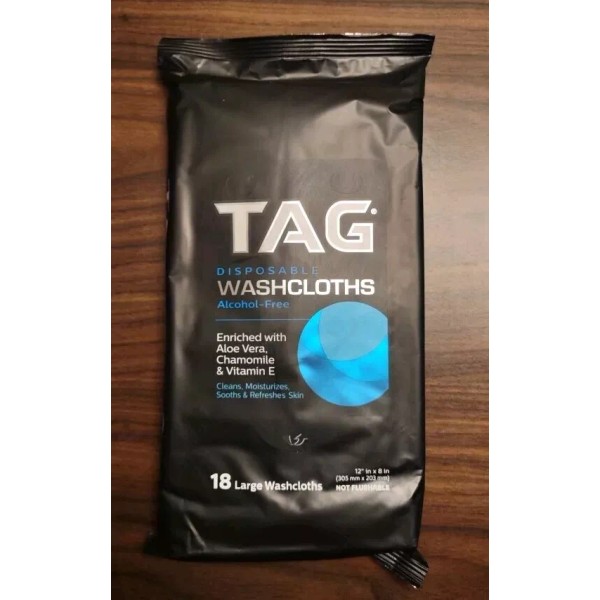 TAG 1 Pack TAG Disposable Washcloths Body Wipes with Aloe Chamomile Vitamin E *NEW*