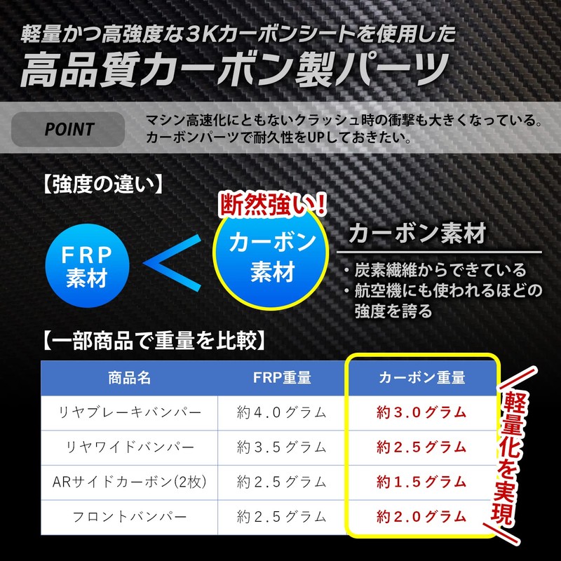 - Set of 3 rear stays made of lightweight and strong 0.1 inch (3 mm) thick carbon