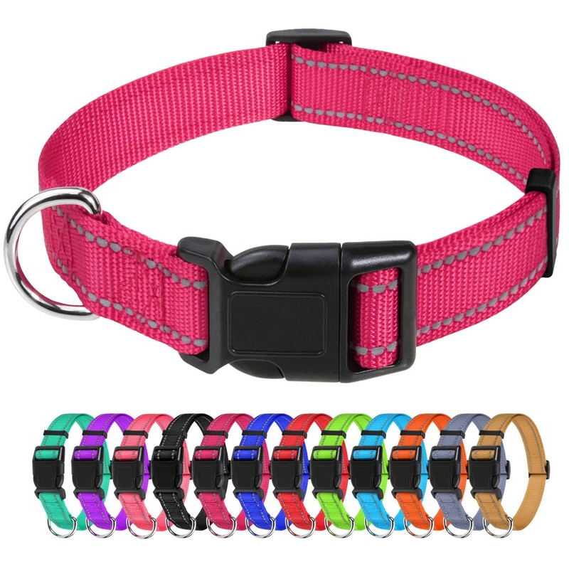 TagME Dog Collar, Adjustable Reflective Nylon Dog Collar with Quick Release Buckle for Medium Dogs, Hot Pink, 1.0" Width