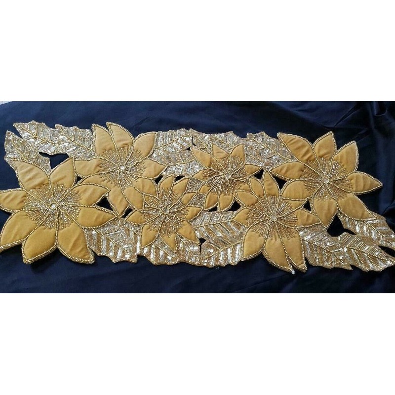 Tahari HOLIDAY Beaded Table Runner Gold Poinsettia Tahari 13 x 36
