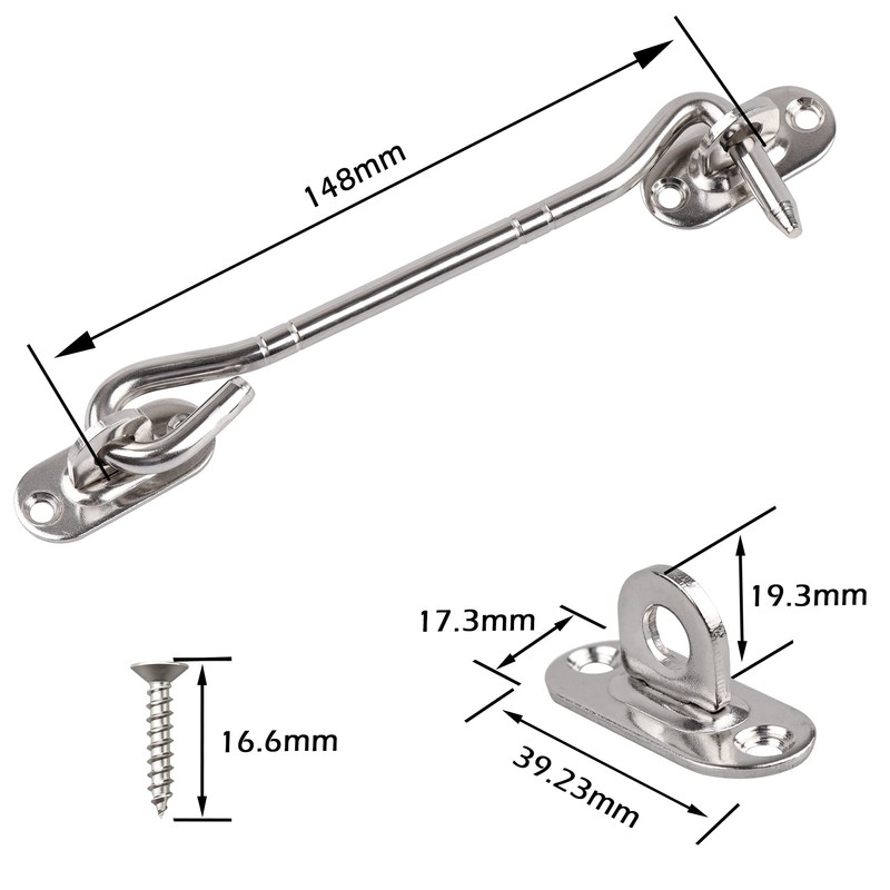 - Versatile Functions The cabin hook is perfect for fixing doors, gates and windows. It is windproof and allows easy control of the opening of windows or doors.