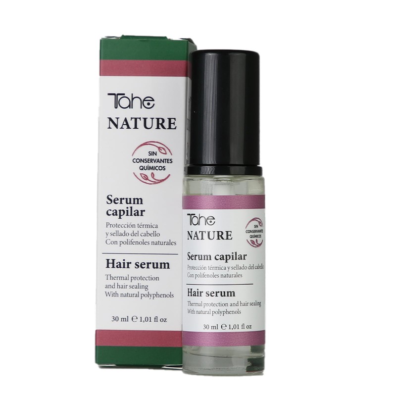 - Features Tahe Nature hair serum: - No chemical preservatives. - Vegan - Natural ingredients. - Packaging is 100% recyclable.
