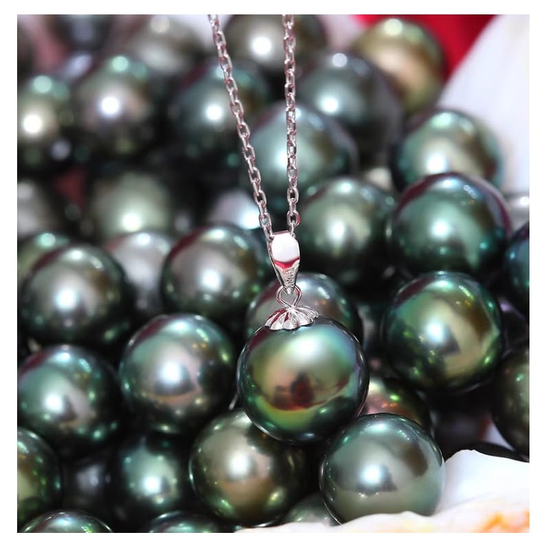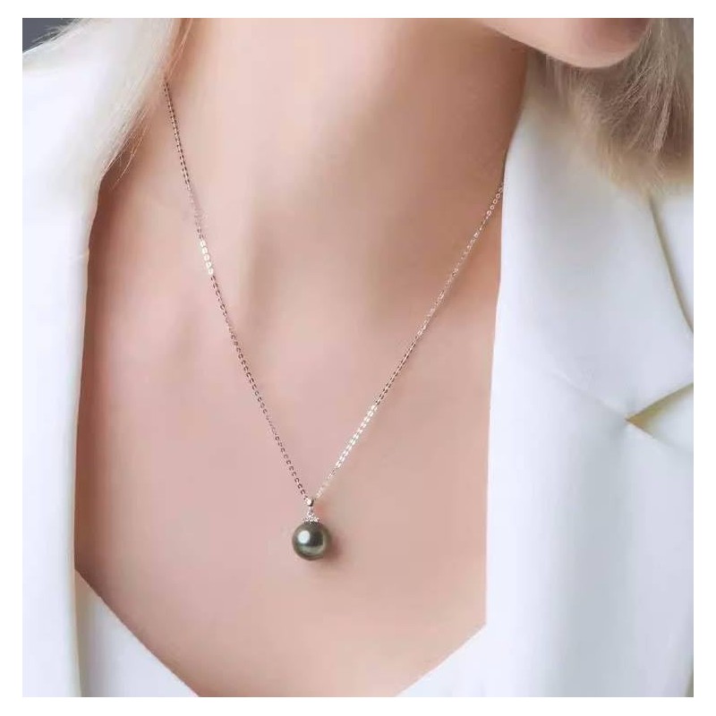 - Necklaces Material: 925 Sterling Silver + Tahitian Black Pearls, Plated with 18K White gold. Tahitian Black Pearls very beautiful