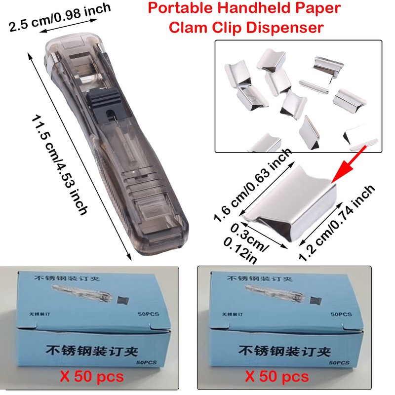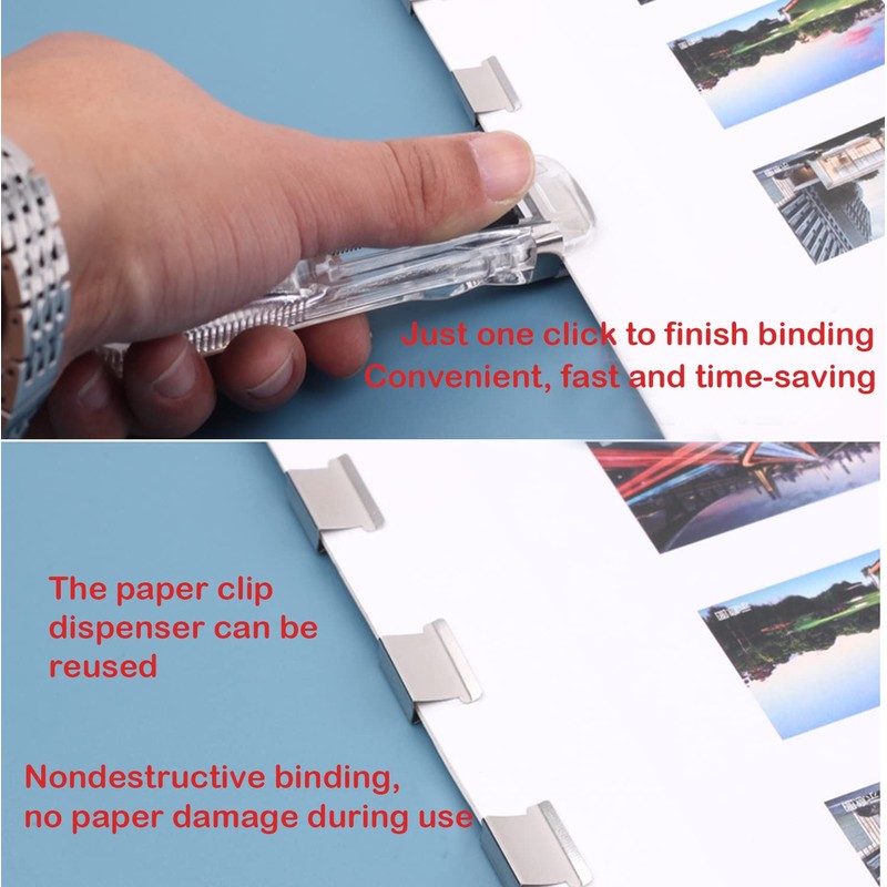 - 【Material】The binder dispenser is made of high quality PP material, the refill clips is made of metal material, durable and can be used for a long time. The clam clip refills of dispensers can staple about 2-40 sheets of A4 or equal thickness items.