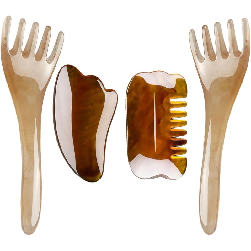Taicols Taicols 4 Pieces of Scraping Facial Tools, Resin Scraping Board, Scalp Hair Massage Comb, Health and Beauty Scraping Plate, Facial, Body, and Leg Unblocking Meridians, Muscle Relaxation, and Fatigue Elimination