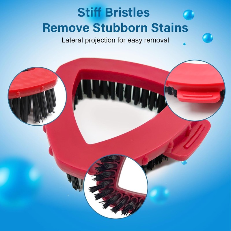 • 【Easy to install and use】The hard bristled brush for cleaning mops is easy to install. Place the base of the triangular mop into a hard bristled brush, press firmly, and hear a "click" sound to install. The overall design of the mop bottom brush is a circular triangle, which is easy to clean in the triangular area with small gaps, making it easy for you to clean and use.