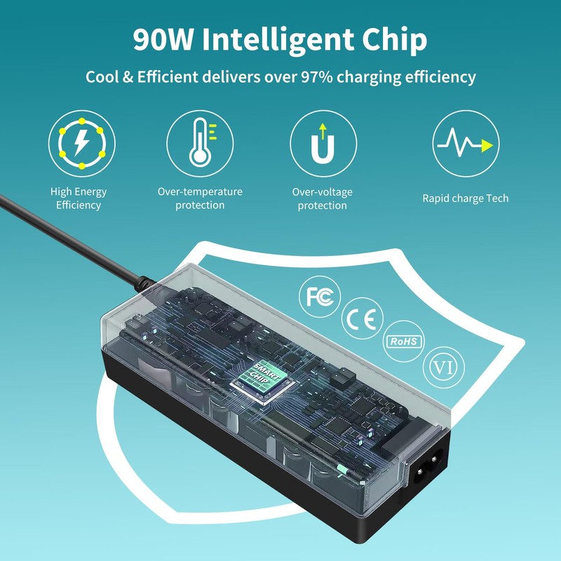 - Input: AC 100-240V ~ 50/60Hz, output power: 24V 3.75A 90W. All products have passed TUV, GS, CB, CE, UL, ROHS certifications. With overcharging, overheating, over-current, over-voltage, short circuit, over-discharge protection, lighter, more convenient, efficient and safer, the best alternative to the original power supply. A high quality power supply product provides maximum protection for your devices, your business, your home