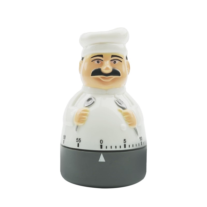 - Other: This twist timer will beep for 3 to 5 seconds when it reaches the set time;This cute chef timer is made of plastic, lightweight and compact, which can prevent damage caused by falling.