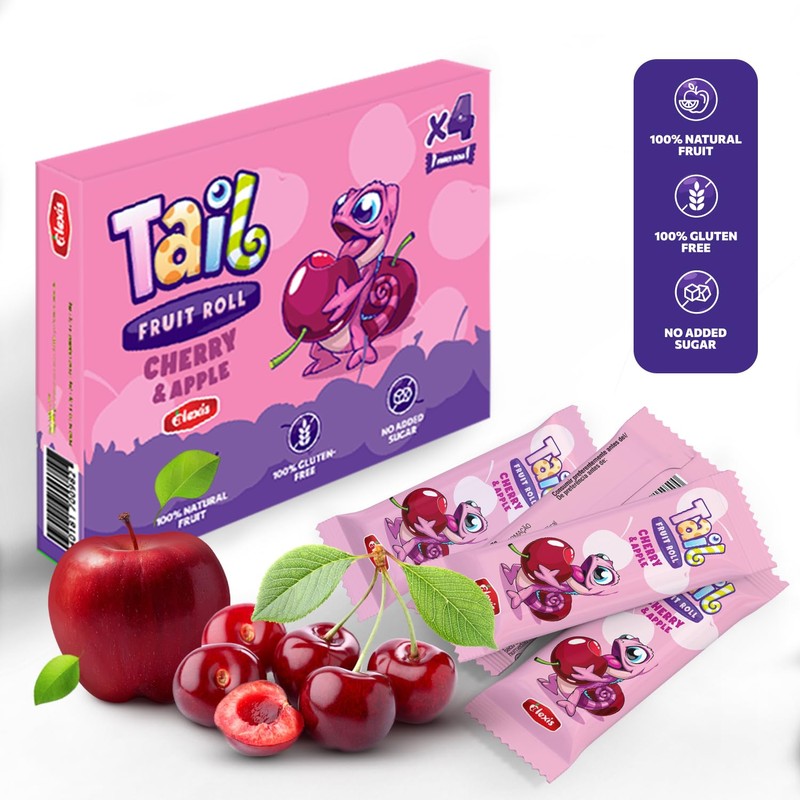 Tail Fruit Roll Healthy Snacks 48 Individual Packs Cherry (Cereza) Flavor for Kids and Adults. No added sugar, non-GMO, source of vitamins, fiber.