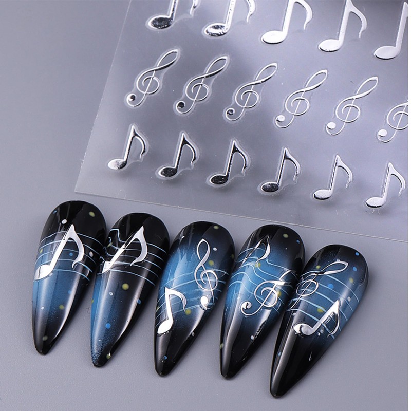 TailaiMei Music Nail Stickers, 3D Gold Black White Design Self-Adhesive Nail Art Decals for DIY Nail Decorations (510)