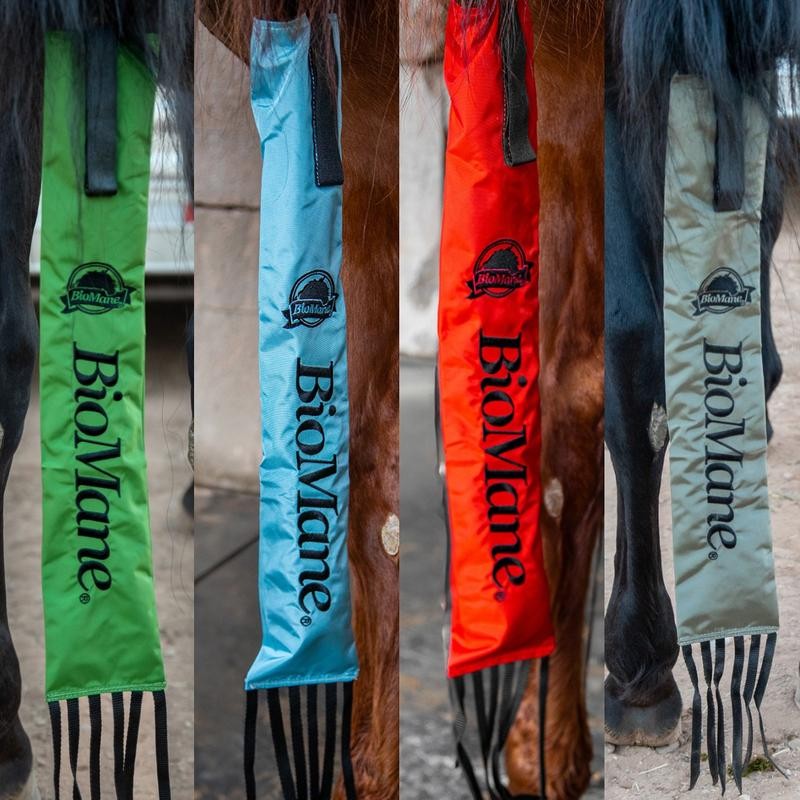 BioMane Tailbags protect the tail from breaking and thinning which occurs from constant swishing. They also protect against snagging and weather damage while still allowing the horse to use its tail to defend against flies. Our tail bags are made of durable, long-lasting materials and are secured by two velcro straps.