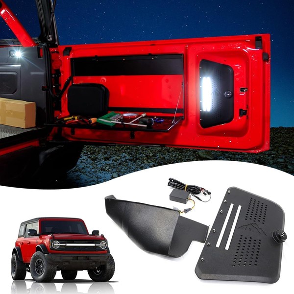 Tailgate Access Panel with Combination Lock & Cargo Light Trunk Hidden Organizer Compatible with 2021-2025 Ford Bronco Rear Door Replacement Dome Lamp Storage Box Interior Accessories