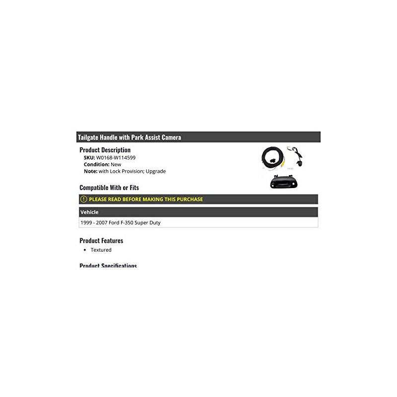 Tailgate Handle with Park Assist Camera - Textured Black - with Lock Provision - Compatible with 1999 - 2007 Ford F-350 Super Duty