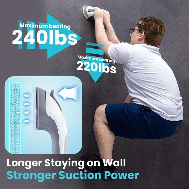 - 【Easy To Install】The suction cup shower handle equips 2 Strong Suction Cups with locking latches to provide stable protection. The bathtub handrail ONLY needs to be pulled down the latches within 5 seconds, and the installation is done quickly and effortlessly! NO drilling, NO screws, NO glue, and NO tools are required, fully removable, reusable, and cause no damage to your wall.