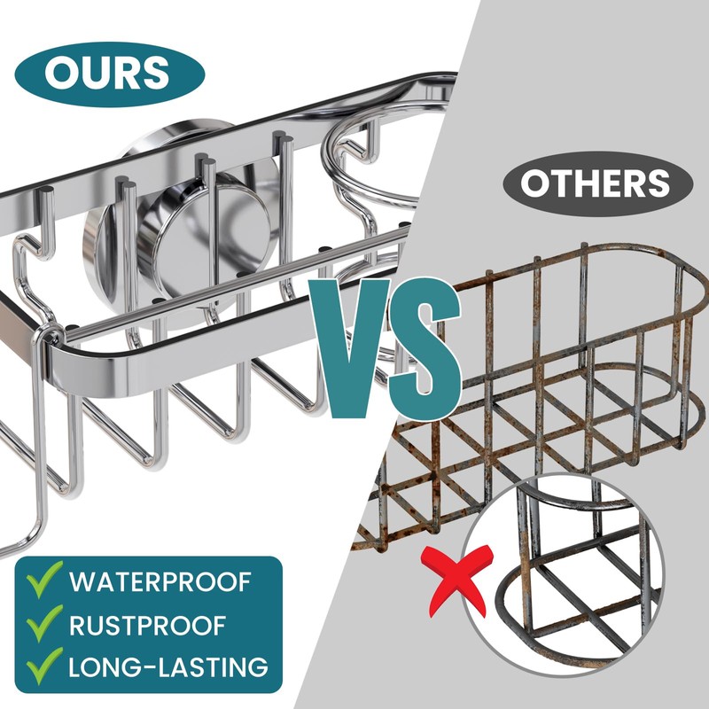 - [Rustproof & Fast Draining]: Made of aluminum finished in rustproof coating which not only prevents rust but also stands up to times. With all-around drainage design, the sponge caddy has maximum air ventilation and fully dripes water away. Keep your kitchen tools air dry quickly and clean