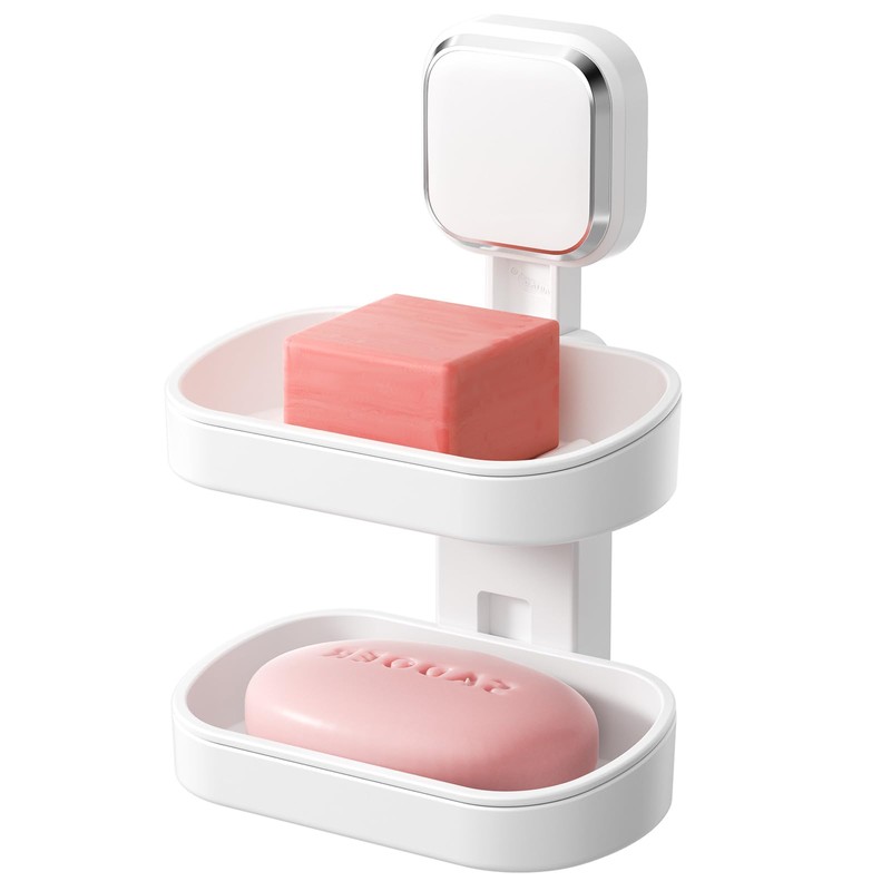 TAILI Suction Cup Soap Dish Vacuum Suction Soap Holder, Double-Layer Strong Sponge Holder for Shower, Bathroom, Drill-Free, Removable, White