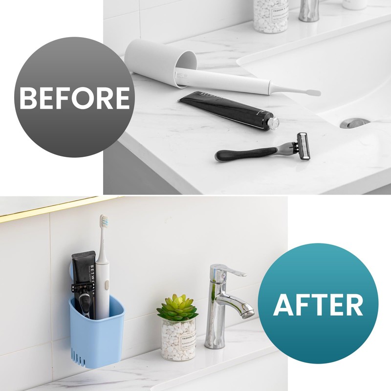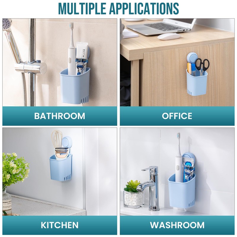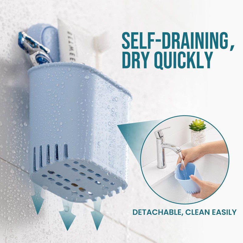 - Unique drainage design: The suction razor holder has many drainage holes in sides and bottom, maximize air ventilation and water dripping away. Keep your bath accessories clean and prevent from breeding bacterial. The toothbrush cup is removable. You can also take it out for cleaning, and even for desk organizer