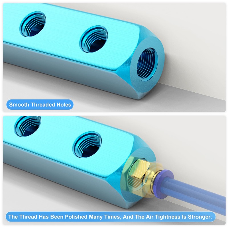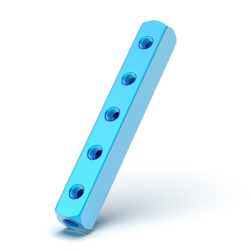 TAILONZ PNEUMATIC 1/4 Inch Blue 5 Way 8 Port Pneumatic Shunt Aluminium Block Pneumatic Manifold Air Distribution Block Air Path Exhaust Air Source Distributor, Compressed Air Manifold Pneumatic Block