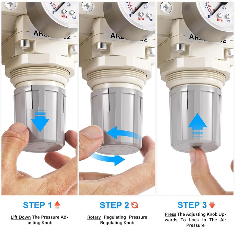- Function: Filtration: Effectively filter moisture and tiny particles in the air. Pressure regulation: adjust different levels of pressure according to demand.