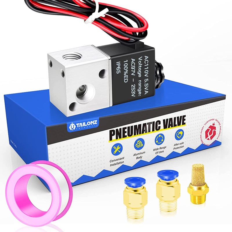 TAILONZ PNEUMATIC 1/8 PT AC 110V 3-Way Second Position Normally Closed Solenoid Valve Solenoid Air Valve 3v1-06