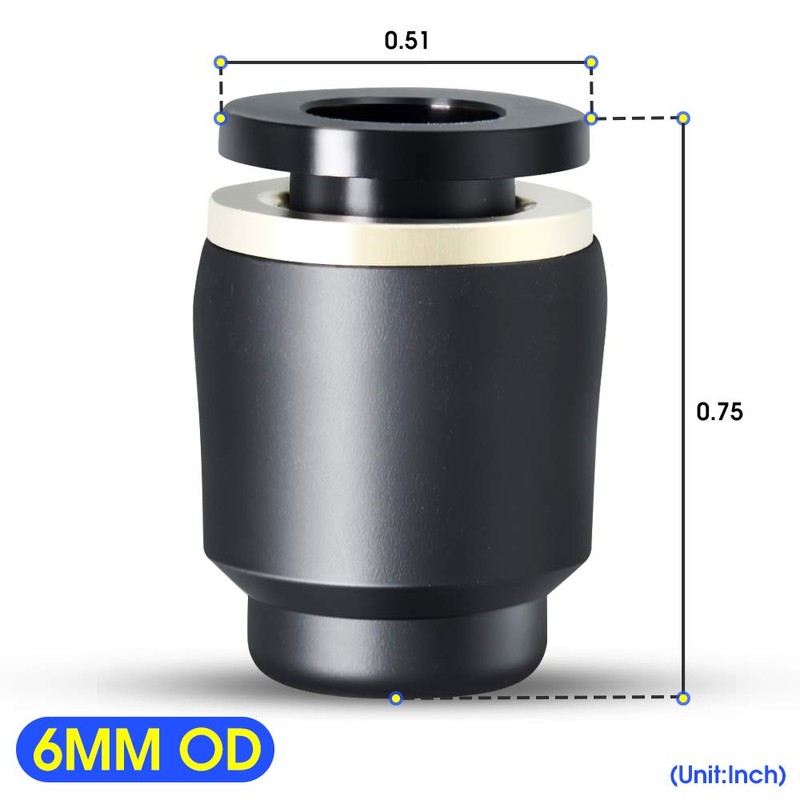 TAILONZ PNEUMATIC 6mm Tube OD Plastic Push-in Connect Tubing Pneumatic Cap Pl...