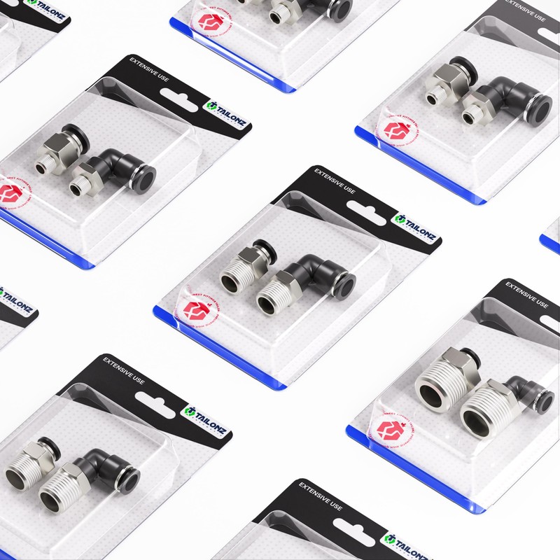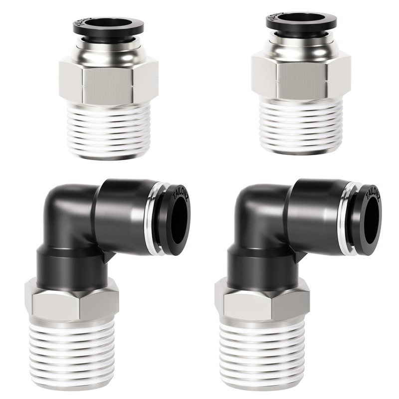 TAILONZ PNEUMATIC TAILONZ PNEUMATIC Elbow and Straight Combination 1/4 Inch Tube OD x 3/8 Inch NPT Thread Push to Connect Fittings PC-1/4-N3+PL-1/4-N3(Pack of 4)