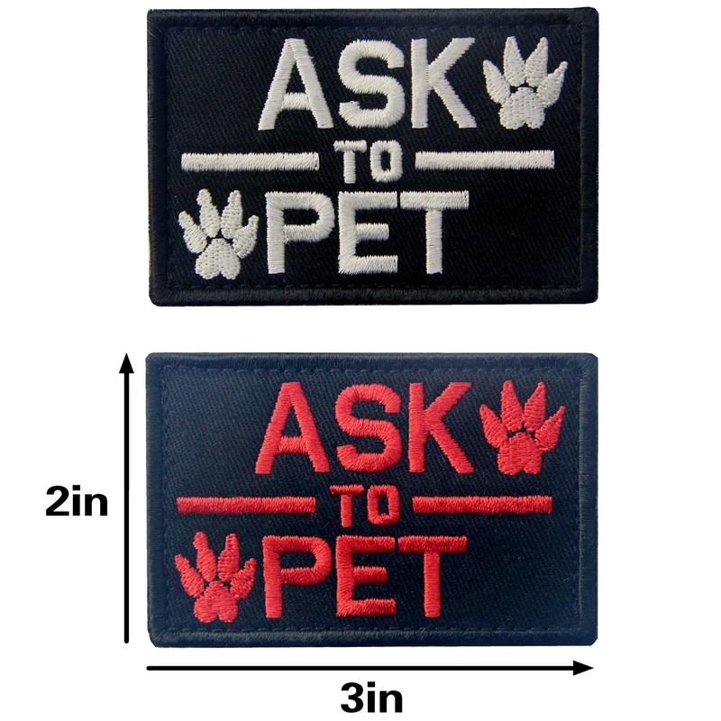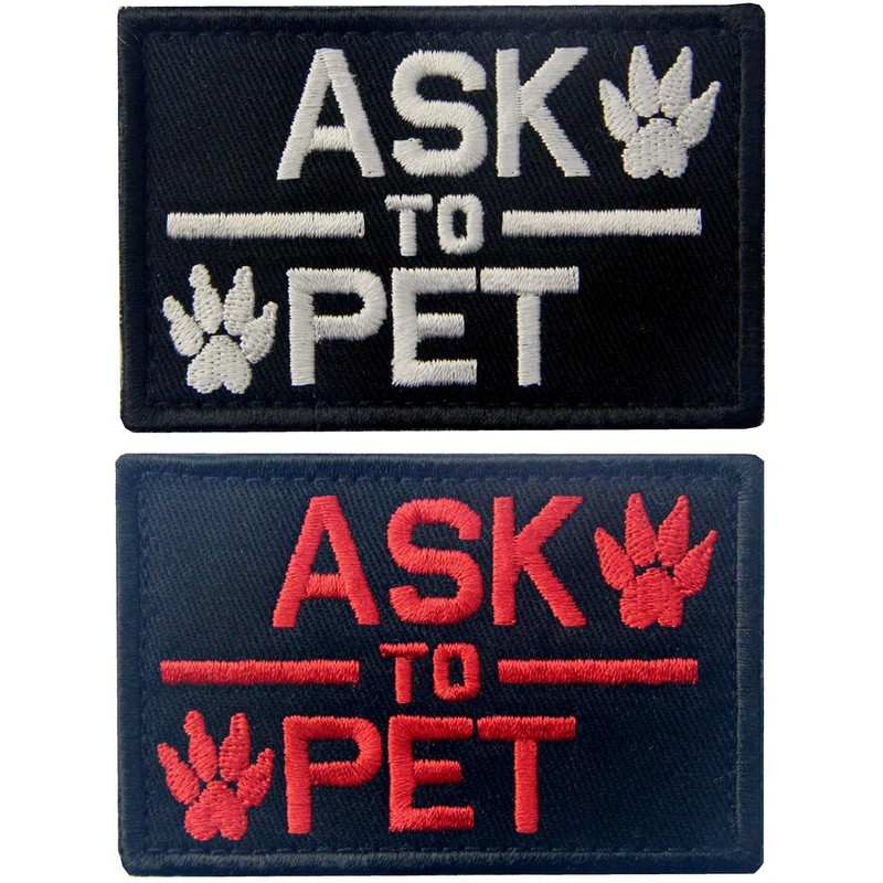 TailWag Planet Service Dog Ask to Pet Patch Embroidered Vest / Harnesses Badge Fastener Hook & Loop Emblem, 2 Pcs