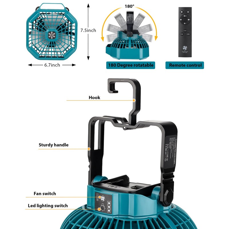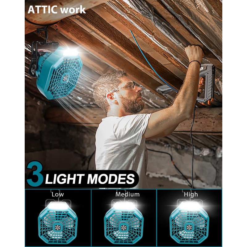 • ❆【2 in 1 battery powered fan】This 6.7 inch industrial fan works with BOSCH battery (not included), LED lamp and fan combo can help you stay comfortable in a hot workshop using the portable fan, which is also ideal for camping, travel, power outages and emergency needs.