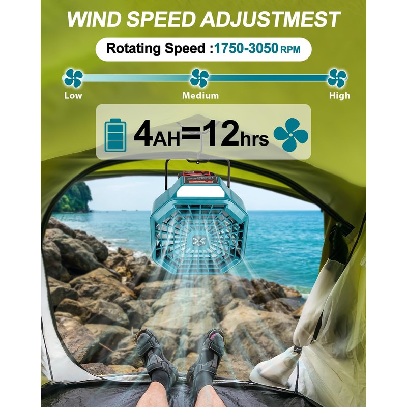 • ❆【3 Speed Fan 3 Brightness Lamp】 This quiet fan has 3 speed settings and 3 brightness levels of LED lamps. You can press the remote control to select the desired wind speed and light brightness. It can meet you to illuminate in the workroom or the surroundings of the campsite for better activities in the darkness.