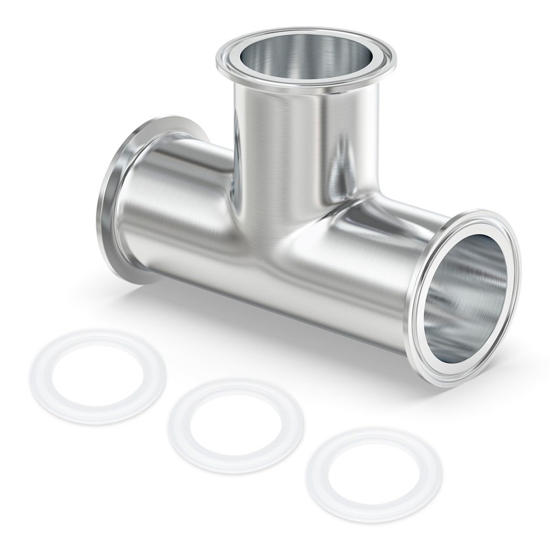 TAISHER 1PCS 304 Stainless Steel 1" Tube OD 3 Way Tee Sanitary Pipe Fittings 1.5" Tri Clamp 50.5MM Ferrule Flange with 3PCS Silicone Gaskets