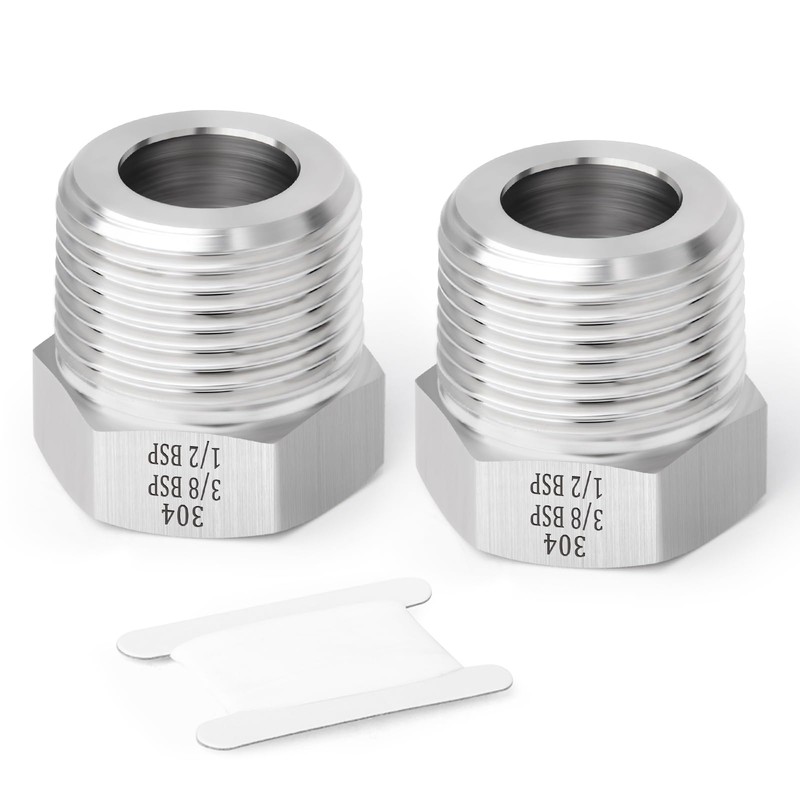 TAISHER Pack of 2 Forging of 304 Stainless Steel Reducer Hex Socket, 1/2 Inch Male BSP to 3/8 Inch Female BSP, Reducing Forging Pipe Adapter Fitting, for Water, Oil, Air, Gas