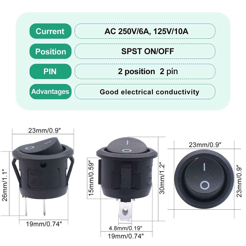 This Rocker switch Exquisite workmanship ,If there are quality problems within 1 years, you can send us email. We will send you new ones. This Mini Boat Rocker Switch Car Auto Boat Round Rocker Toggle Switch. Widely used for various kinds of electrical products, instrument, car, boat, household appliances such as lights, water dispenser, treadmill, coffee pot, speaker, electric car, motorcycle, TV, massage machine etc.
