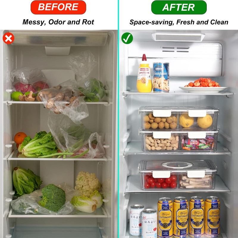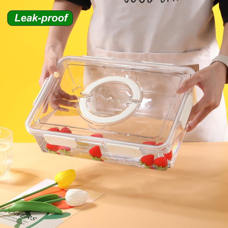 - 【Airtight & Freshness】The lid of this produce storage bin features a food-grade silicone ring seal and 6 reinforced snaps for excellent air tightness. It has strong low temperature resistance and is very suitable for storing various fruits, vegetables and meats in the refrigerator and keeping the food fresh.