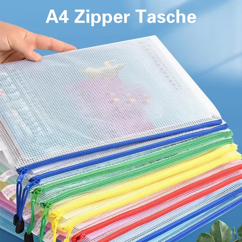 Taiyeestar Pack of 12 A4 Document Wallets, Colourful Waterproof Document Bag with Zip, File Zipper Bag, Mesh Plastic Zip Bag for Documents, Cosmetics, Travel Accessories