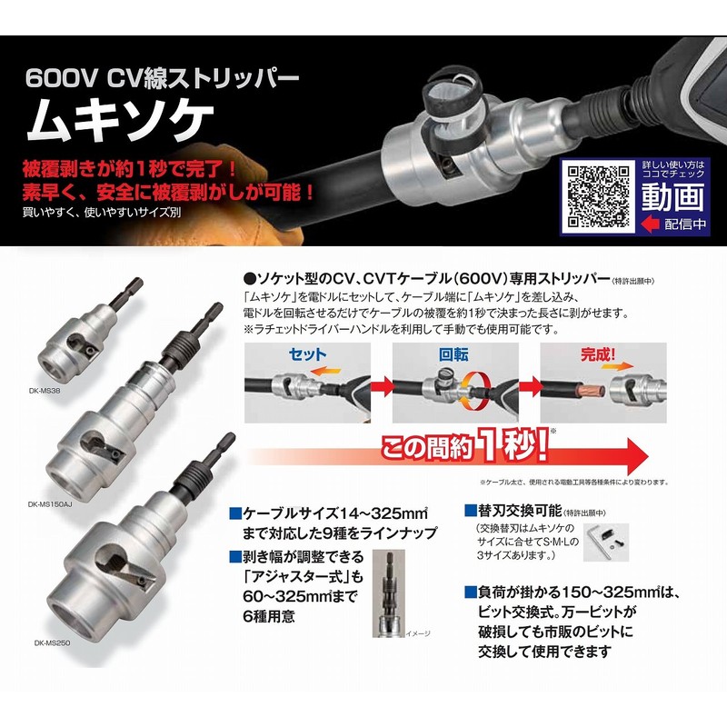 タジマ(Tajima) ビニール絶縁電線用皮剥き ソケット型CV線ストリッパー ムキソケ アジャスター式 150㎟ 600V CV線(CV単芯、CVT用) 個箱 DK-MS150AJ