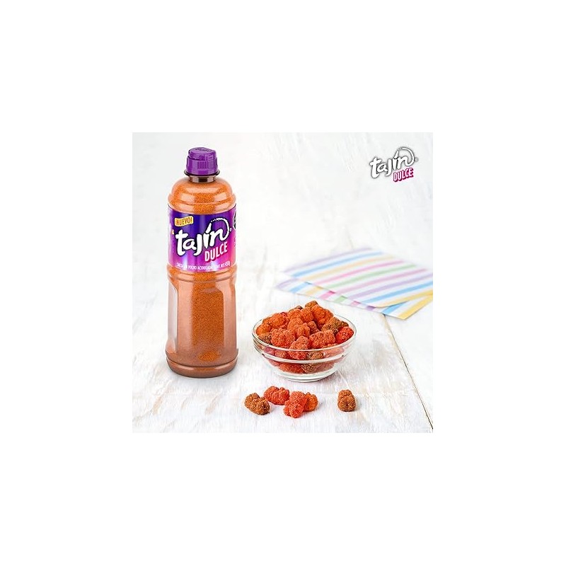 Disfruta del sabor único y versátil del Tajín Dulce, presentado en un paquete de 450 gramos. Esta mezcla especial combina la suavidad del azúcar con el toque picante y cítrico característico de Tajín, creando un equilibrio perfecto entre dulzura y un sutil picor. Ideal para espolvorear sobre frutas, postres, y bocadillos, el Tajín Dulce añade una capa de sabor delicioso y sorprendente a tus recetas y creaciones culinarias.
