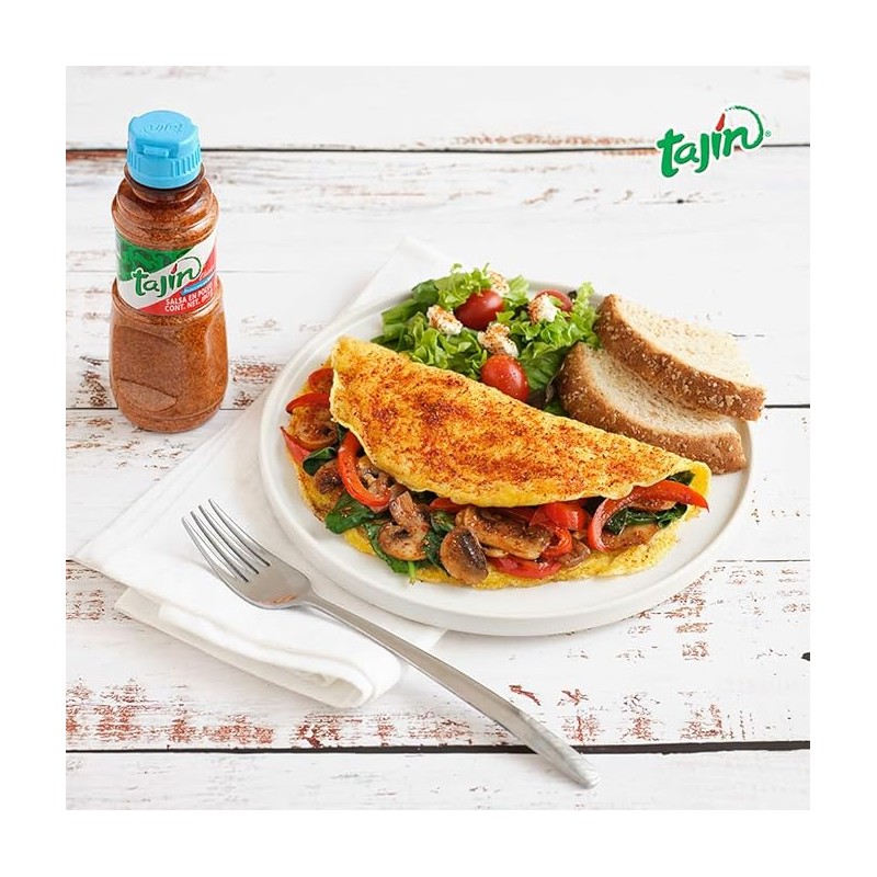 TAJÍN Reducido en Sodio, disfruta el mismo sabor único con menos sodio en frutas, verduras y platillos saludables. Hecho a base de Chiles 100% mexicanos.