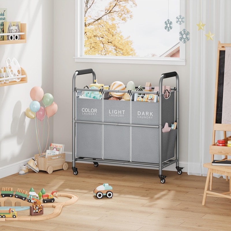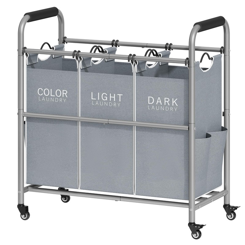 - 【Removable Laundry Bags】Each laundry bag can be taken out individually from the 3 part laundry sorter, just use the two metal handles to lift the laundry bag for easy access to the laundry room