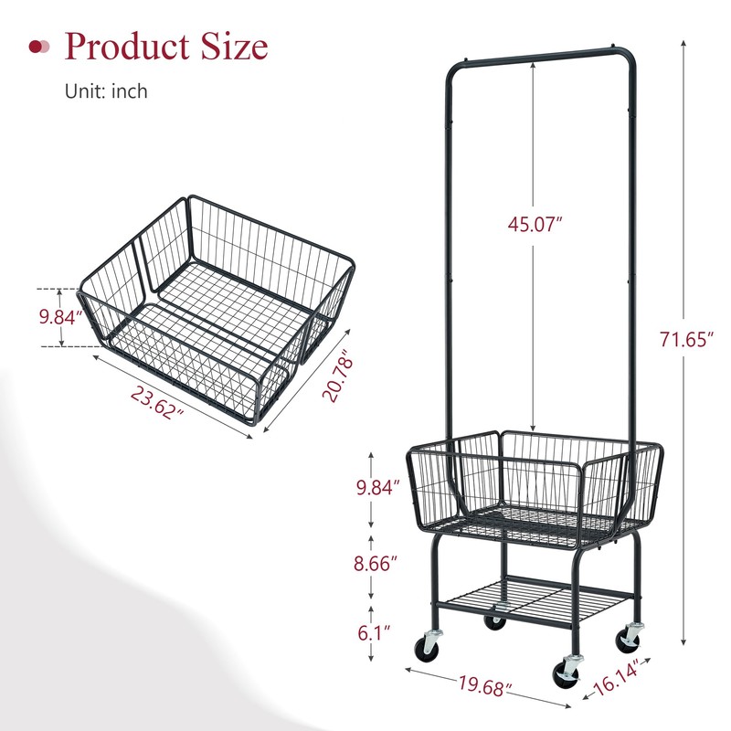 - Durable and Sturdy: This rolling laundry hamper measures 23.62 "l x 20.78 "w x 9.84 "h, large enough to hold clothes, with a bottom shelf for added storage space. sturdy metal construction with non-corrosive coating makes the Laundry Hamper Sorter durable.