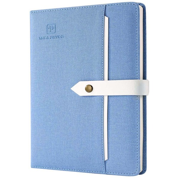 TAKA PRYOR (タカプライヤー) 罫線入りジャーナルノート レディース メンズ 200ページ A5 ハードカバーファブリックジャーナル ライティング/旅行/ビジネス/仕事/学校用 大学罫線入りノート メモ帳 日記メモ帳 5.7インチ×8.3インチ (ライトブルー)