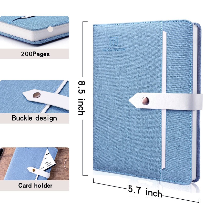 TAKA PRYOR (タカプライヤー) 罫線入りジャーナルノート レディース メンズ 200ページ A5 ハードカバーファブリックジャーナル ライティング/旅行/ビジネス/仕事/学校用 大学罫線入りノート メモ帳 日記メモ帳 5.7インチ×8.3インチ (ライトブルー)