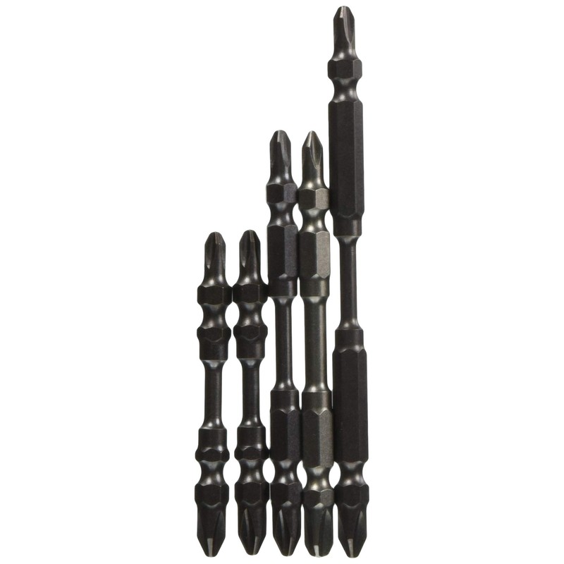 - Set Includes: 2.6 inches (65 mm) double ended bits: + No.2 x 2, 3.3 inches (85 mm) double ended bit: + No.2 x 1, 4.3 inches (110 mm) double ended bit: + No.2 x 1, 3.3 inches (85 mm) double ended screwdriver bits: + No.3 x 1