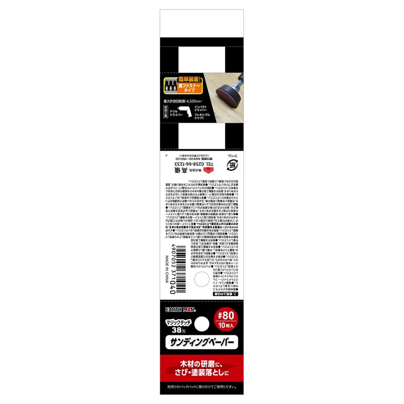 Takagi Earth Man Magic Touch 1.5 inches (38 mm) Sanding Paper #80 10 Sheets Back Pad Velcro Compatible Tool Drill Driver Impact Driver Flexible Shaft Maximum Rotational Speed 4,500 min-1 Wood