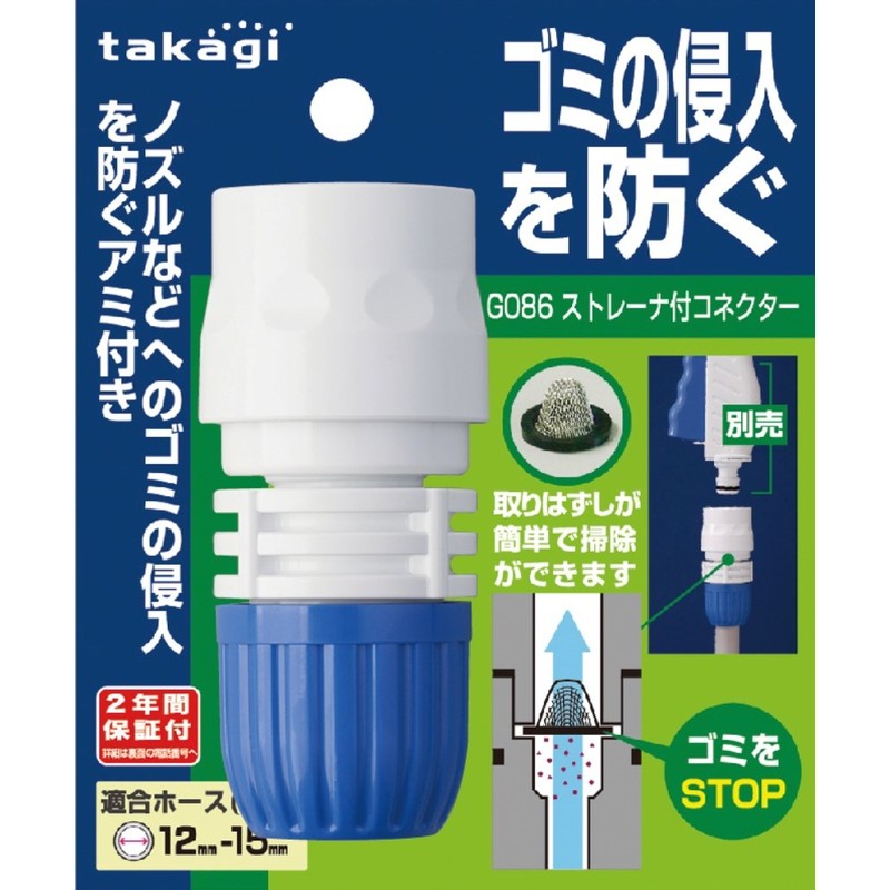 Takagi G086FJ Hose Joint Connector with Strainer, Normal Hose, Prevents Trash Intrusion